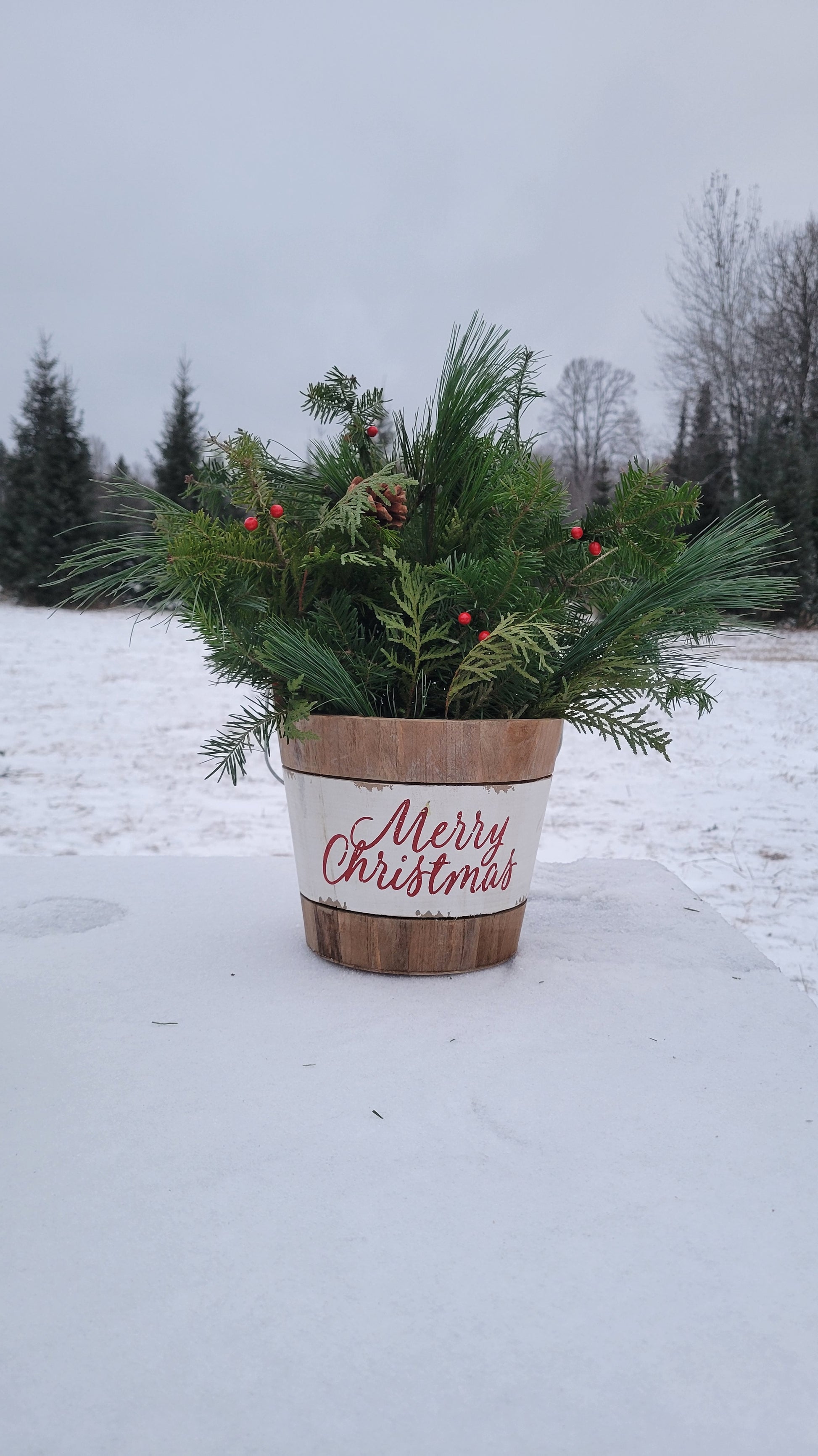 Spruce up your home or office with this festive Christmas planter! This attractive piece of evergreen decor comes in varying sizes and arrangements. Best of all, you can keep this quality planter for all times of the year! Just replace the evergreen boughs with your favorite real or artificial floral arrangements. We keep relatively low inventory counts on specific planter style to better offer a variety - so order yours today to grab that special planter you have your eye on.